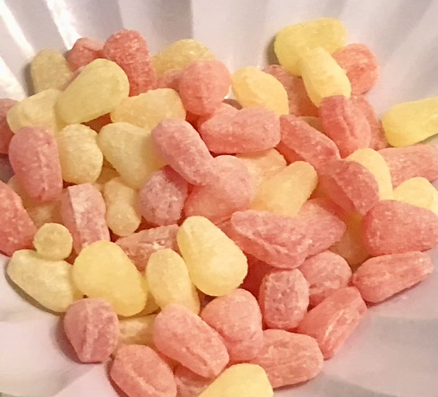 Small fruity pear flavoured classic boiled sweet.