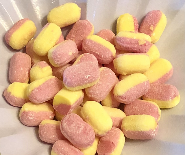 Classic boiled sweets with distinct rhubarb & custard flavour.